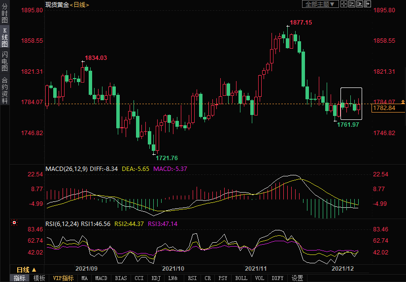 现货黄金本周几乎持稳,周线三连跌势暂止,终盘收于1782.84美元/盎司。本周金价主要以横盘震荡为主,本周大部分时间投资者都谨慎交投,投资者继续衡量Omicron带来的影响以及潜在的通胀上升风险。在美国11月CPI飙升至近40年新高之后,美联储料将在下周会议上宣布加快减码。