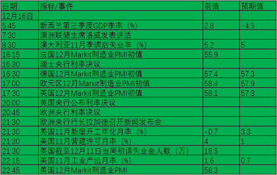 12月13日-19日当周重磅数据及事件前瞻:全球四大央行决议+恐怖数据风暴来袭!