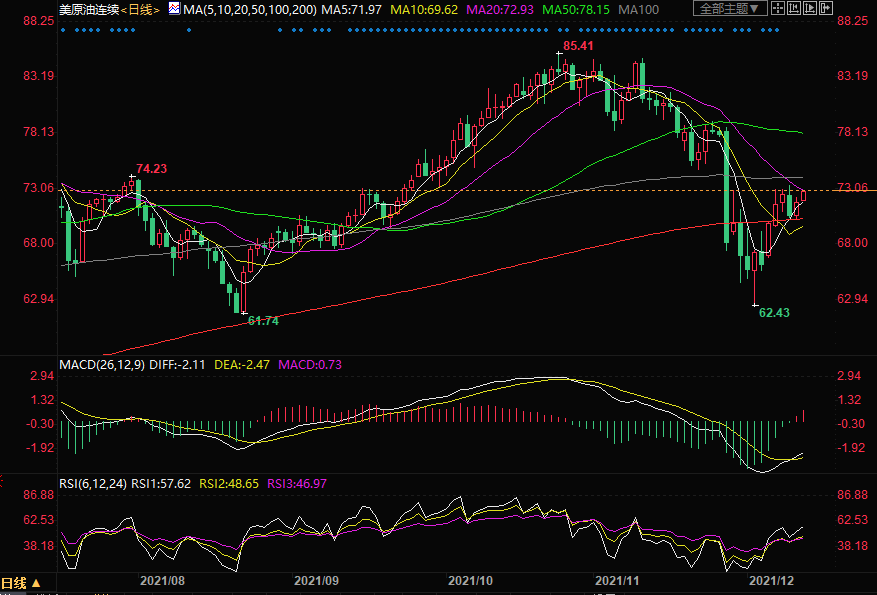 下方若跌破日内低位72.01则看向200日均线70.35,进一步看向11月26日低位67.40。