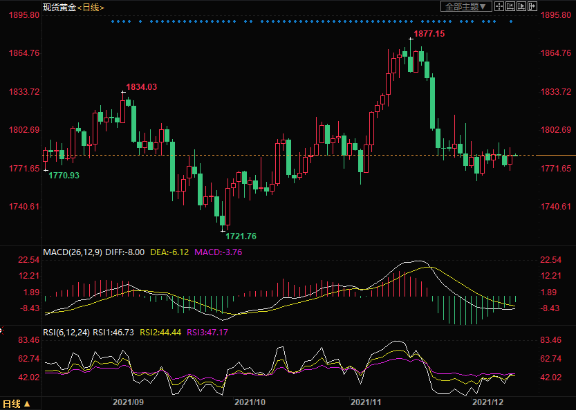 周一(12月13日)亚洲时段,现货黄金持稳于1783附近。上周五(12月11日)金价小幅上涨,因美国通胀飙升至近40年最高,不过美国12月消费者信心指数从十年低点回升,美股当天也大幅上涨,这限制了金价的涨势。