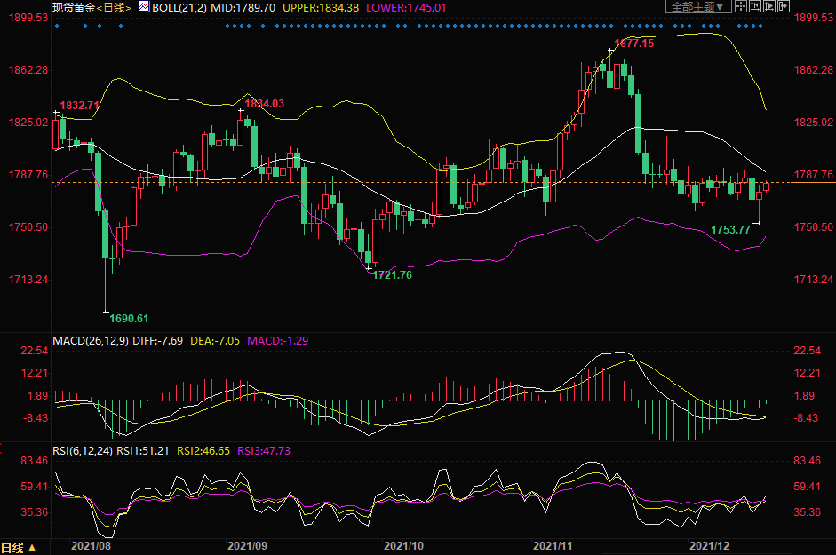 12月16日黄金交易策略:关注布林中轨阻力1789