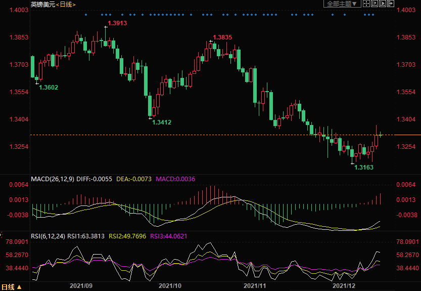 下方支撑主要关注12月15日高位1.3283、12月3日低位1.3209以及12月8日低位1.3163。