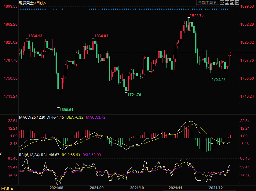 周五(12月17日)现货黄金小幅上涨,金价周四强势上涨,日内有较大机会延续涨势,建议投资者逢低做多。