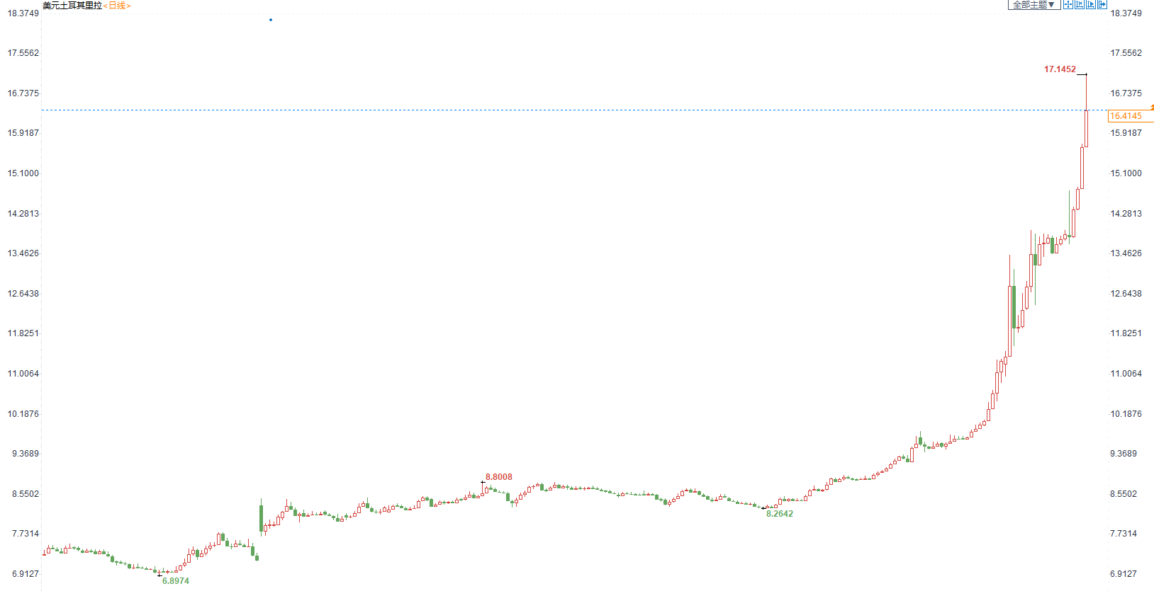 图:美元兑土耳其里拉日图走势