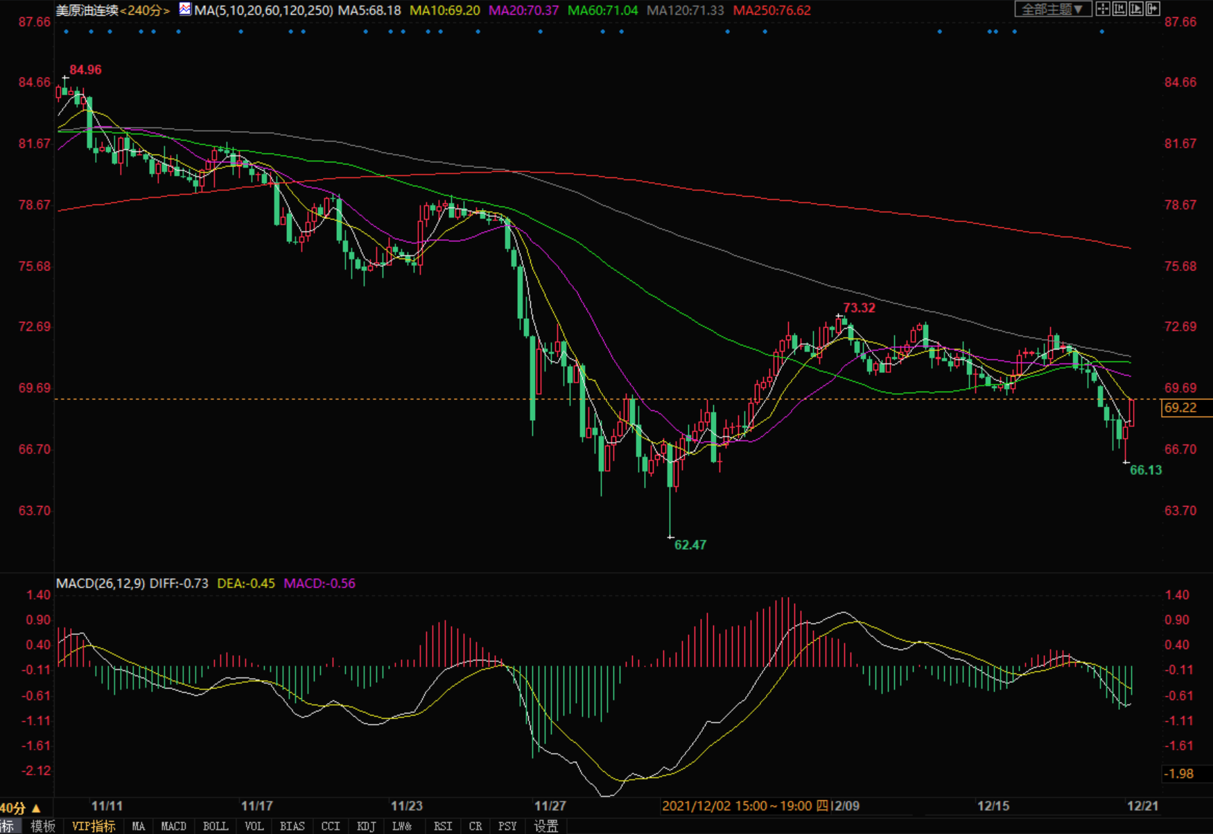 周一(12月20日)布油期货下跌2美元,跌幅为2.7%,结算价报71.52美元/桶。随着omicron病毒变种肆虐和拜登经济计划出现变故,悲观情绪蔓延整个金融市场,令油价一度深跌6%左右。