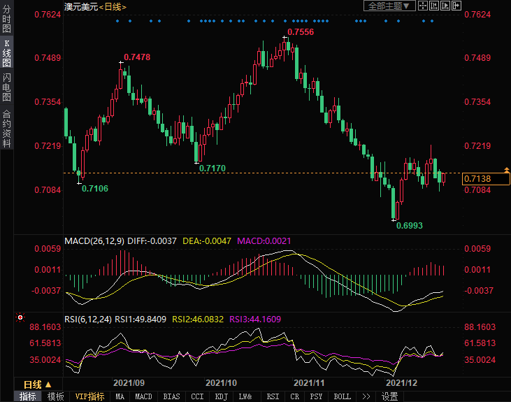 上方需要关注阻力位0.7170、0.7224、0.7273,下方需要关注支撑位0.7106、0.7063、0.6993。