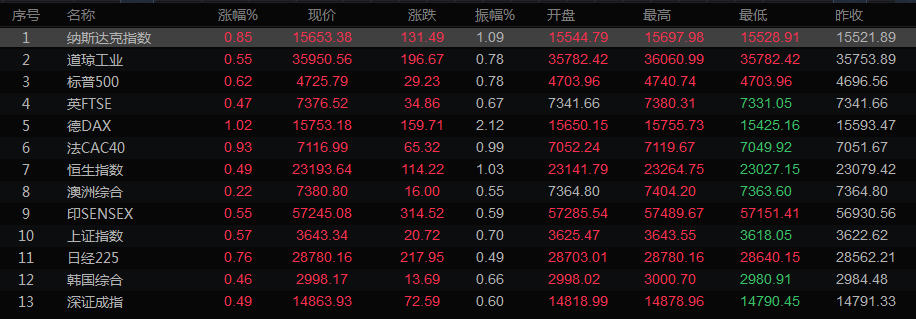 全球主要市场行情一览