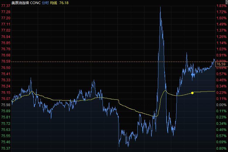 美油一度大涨1.83%,刷新11月26日以来高点至77.37美元/桶;布油盘中突破80美元关口,交易员正在消化美国原油库存降幅大于预期,及美国原油产量增加的消息。