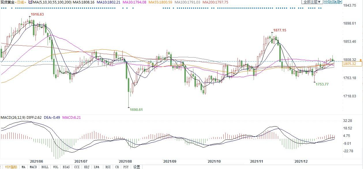 北京时间12月29日15:30,现货黄金报1805.34美元/盎司。