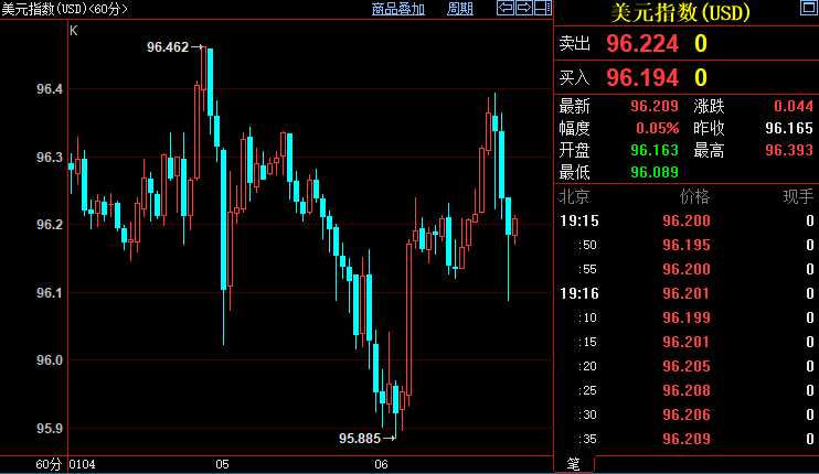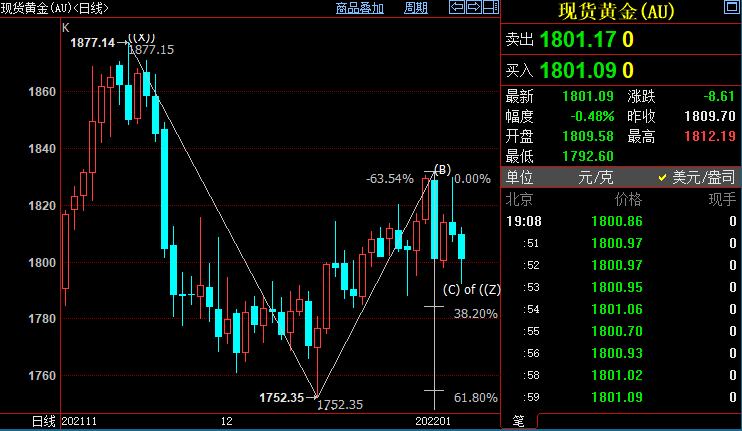北京时间19:16,现货黄金下跌0.60%至1799.60美元/盎司;COMEX期金主力合约下跌1.40%至1799.4美元/盎司;美元指数持平于96.196。