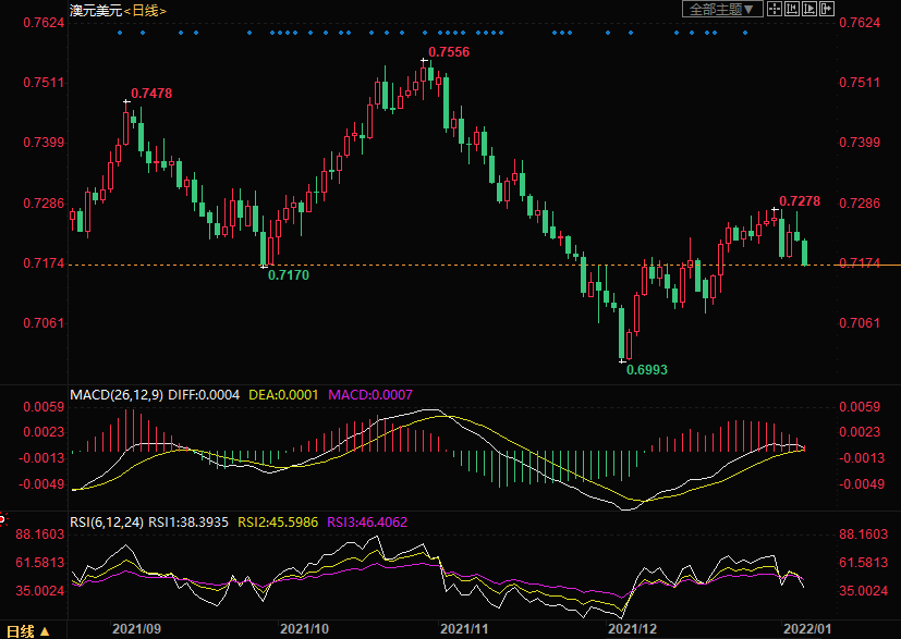 美联储公布上次会议记录,暗示他们可能最早在3月加息,而分析师原本认为更可能在5月或6月开始行动。之后澳元和纽元均回落。