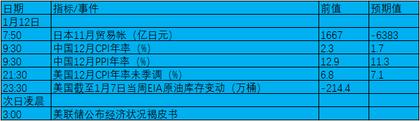 1月10日-16日当周重要数据及事件前瞻:中美12月CPI与“恐怖数据”来袭