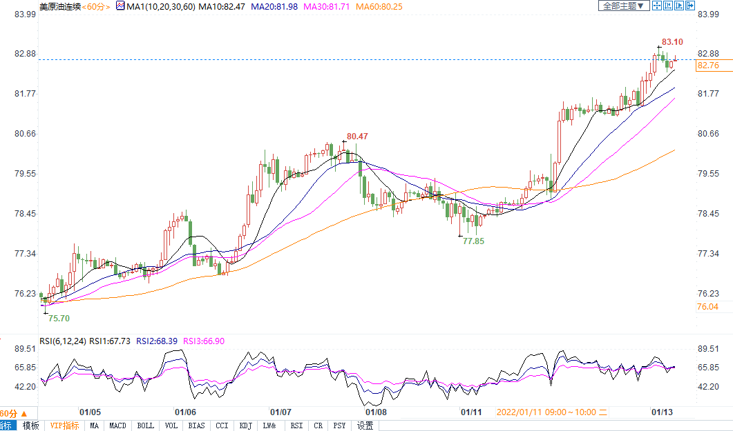 周三(1月12日)布油尾盘上涨1.21%,报收84.73美元/桶,盘中一度突破85美元关口。 早前国际能源署(IEA)和美国能源信息署(EIA)都暗示市场供应可能比先前预期更紧张,且政府报告显示美国上周原油库存大幅下降,使得油价震荡上行。