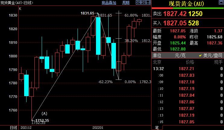 周四(1月13日),国际金价维持在上日所及一周高点附近,之前公布的美国通胀数据符合预期并强化了美联储加快升息的必要性。金价短线继续看涨,料升向1843美元。