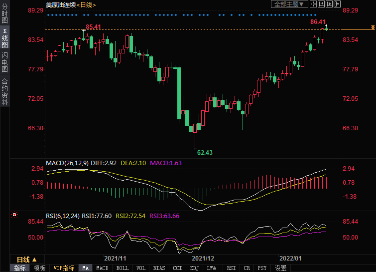日线级别:油价近期强势创7年新高,受到基本面利多因素的支撑。