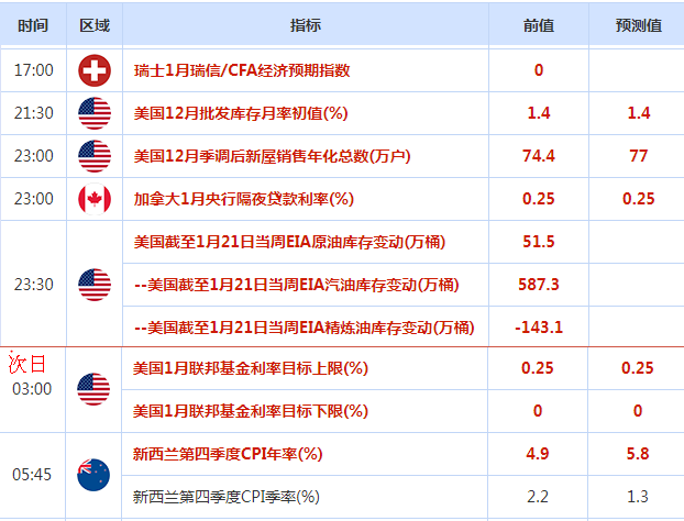 周三(1月26日)关键词:美国12月季调后新屋销售年化总数、美联储利率决议、加拿大央行利率决议