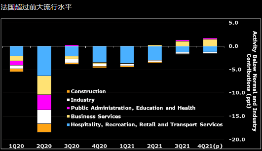 随着感染率迅速上升,到2022年年初时活动可能会放缓。不过,分析师预计2022年一季度情况会有所改善,帮助一季度GDP增长约0.5%。