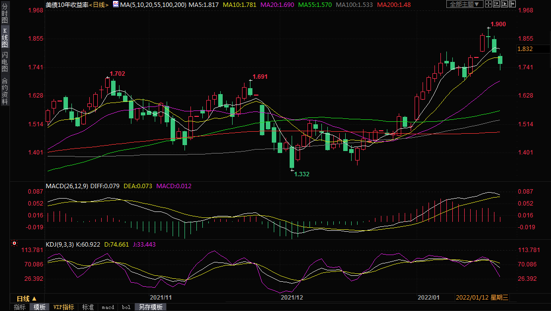 本周美国10年期国债收益率一度升至1.9%,为2020年2月以来新高,但后两个交易日大幅回落,收报1.758%,周线收跌1.46%。如果1月份的美联储利率决议不是特别鹰派,或者有打压美债收益率的措辞,则金价可能会获得进一步上涨机会。