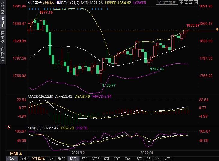 技术面上金价仍然偏强运行,MACD金叉,金价仍然在不断创新高,因美联储鹰派的预期基本被市场消化,金价下行压力基本缓解。