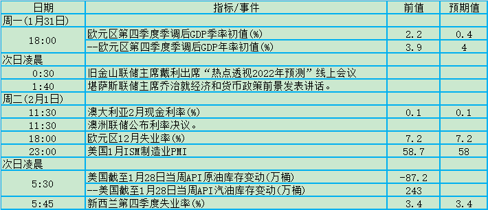 周一(1月31日)、周二(2月1日)关键词:欧元区GDP、澳洲联储决议、欧元区失业率、美国制造业、新西兰失业率、API