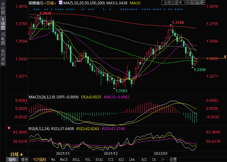 然而,要想反弹形成动能,英镑兑美元需要在1月27日的高点1.3468上方获得买盘,下一个上行目标位于1.3500。
