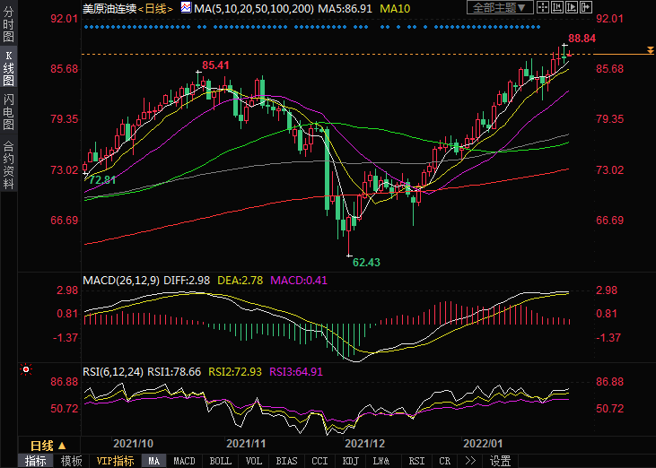 眼下市场仍在等待俄乌局势的发展以及OPEC+本周的部长级会议,预计高位持坚或继续小幅走强的机会稍大,建议投资者仍可逢低买入。
