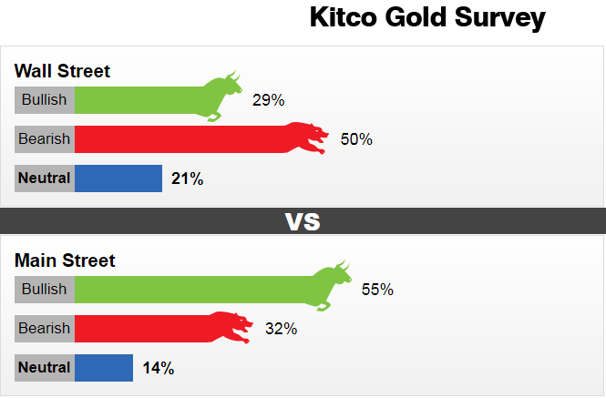 上周,14位华尔街分析师参与了黄金调查。在参与者中,有4人(即29%)认为金价将上涨。与此同时,七位分析师或50%的分析师认为金价将下跌,三位分析师或21%的分析师认为金价横盘整理。