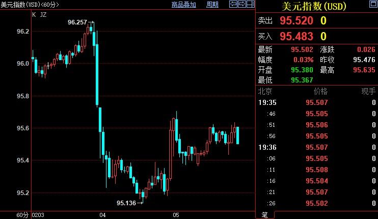 北京时间19:35,现货黄金上浮0.24%至1812.70美元/盎司;COMEX期金主力合约上涨0.30%至1813.2美元/盎司;美元指数上浮0.06%至95.507;欧元兑美元下跌0.18%至1.1435。