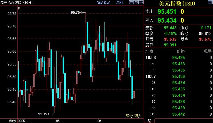 北京时间19:07,现货黄金上浮0.06%至1826.97美元/盎司;COMEX期金主力合约持平1827.9美元/盎司;美元指数下跌0.17%至95.434。