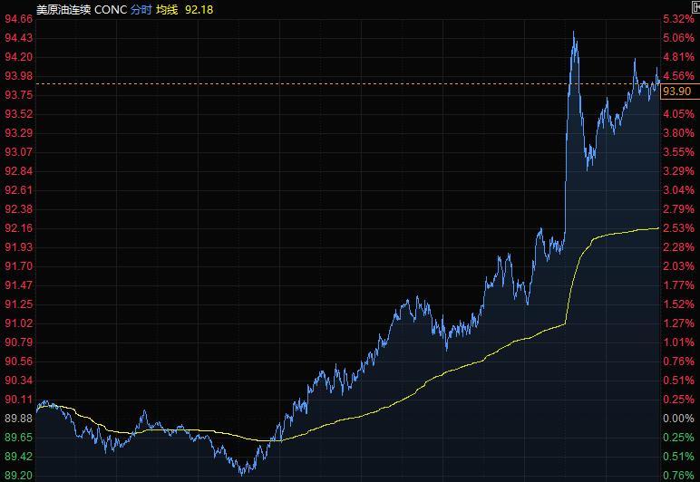石油连续第八周上涨,全球基准的布伦特价格突破95美元,美油涨超4%,刷新2014年9月以来高点至94.66美元/桶,因乌克兰和俄罗斯之间的紧张局势加剧了对全球供应紧张的担忧,之后回吐涨幅。