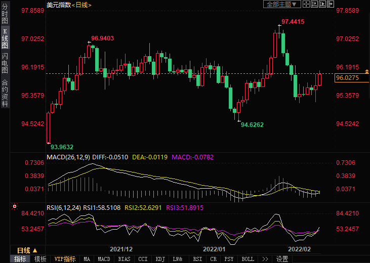 美元指数本周上涨0.63%至96.02,主要受到俄乌局势升温的避险情绪支撑,另外,高通胀提振了美联储将更加鹰派的预期,这也提振美元走强。非美货币中,商品货币集体走强,澳元涨0.92%,纽元涨0.56%,加元涨0.16%。欧系货币涨跌互相,欧元跌0.86%,英镑涨0.22%。日元跌0.15%。