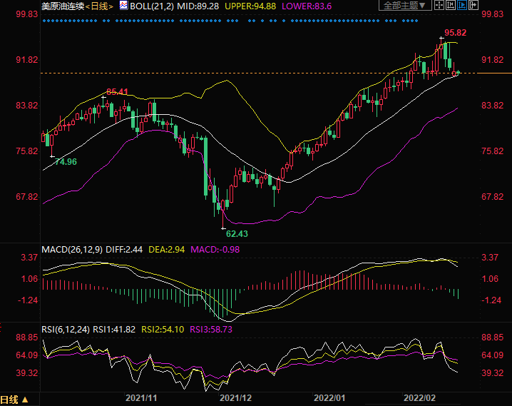 技术面来看,MACD、RSI死叉,油价测试布林中轨的支撑,若强势跌破支撑位,后市有望进一步下跌,如果油价受到支撑并反弹,油价可能重回涨势。