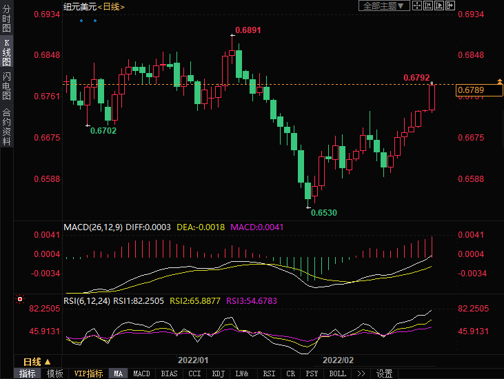如果能进一步突破0.6800一线的阻力,纽元短线前景将继续看涨,上方100日均线在0.6859。