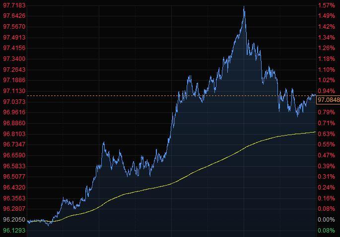 美元指数上涨0.91%至97.08,创下2020年3月以来的最大单日百分比涨幅,当时美国市场正处于第一波新冠疫情的打击之中。美元兑一篮子货币触及97.74,为2020年6月30以来最高。