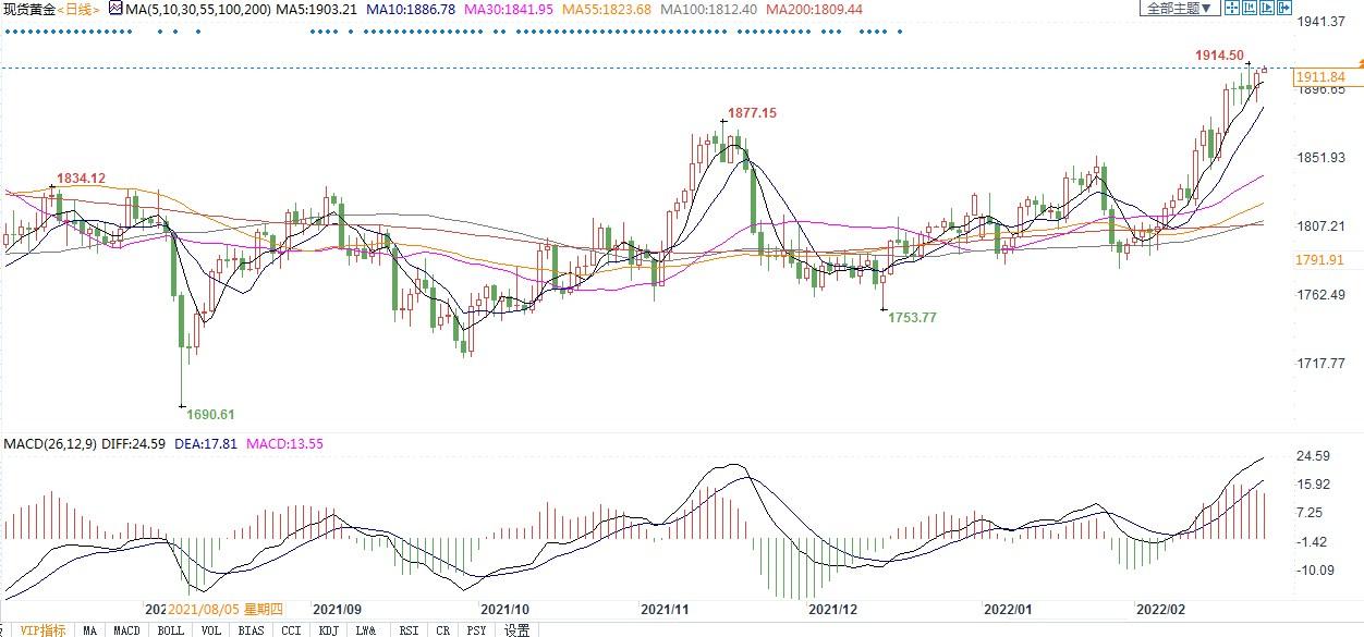 北京时间2月24日8:51,现货黄金报1911.40美元/盎司。