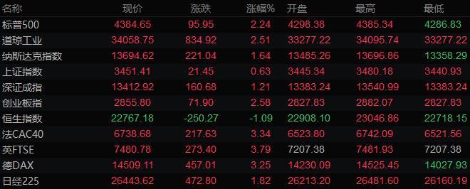美国股市连续第二天上涨,因为经济数据和俄乌战争的不确定性导致交易员下调对美联储下月大幅加息的押注。标普500指数走高,11个板块中8个板块涨幅超过2%;由于地缘局势紧张继续令高估值科技股承压,纳斯达克100指数涨势落后大盘。