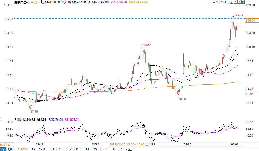 IEA紧急抛储难抑供应中断担忧,美油飙升逾11%站上106