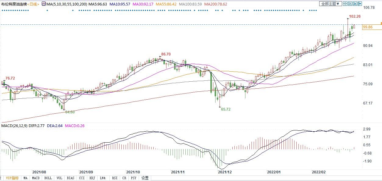 油价上一次突破每桶100美元是在2月24日俄罗斯军队入侵乌克兰时,布油自2014年年中以来首次突破每桶105美元。