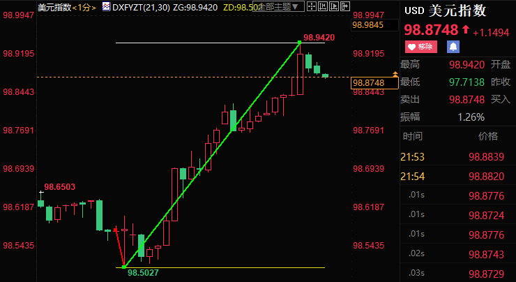 美国劳工部发布的2月非农就业报告表现大幅向好,失业率下降。尽管薪资增速明显放缓,但劳动力市场仍较为强劲,就业复苏似乎步入正轨。数据公布,美指短线飙升近40点,创2020年5月28日以来新高,逼近99关口。