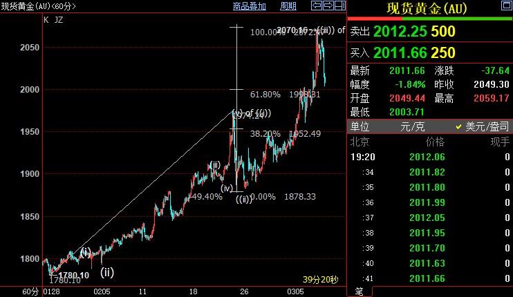 日线上看,金价自1779美元开启上行5浪走势。小时图上看,金价可能自1878美元开启上行((iii))浪走势,有望在61.8%目标位1998美元附近企稳,并有望重启升势,升破100%目标位2072美元。((iii))浪是5浪的子浪。