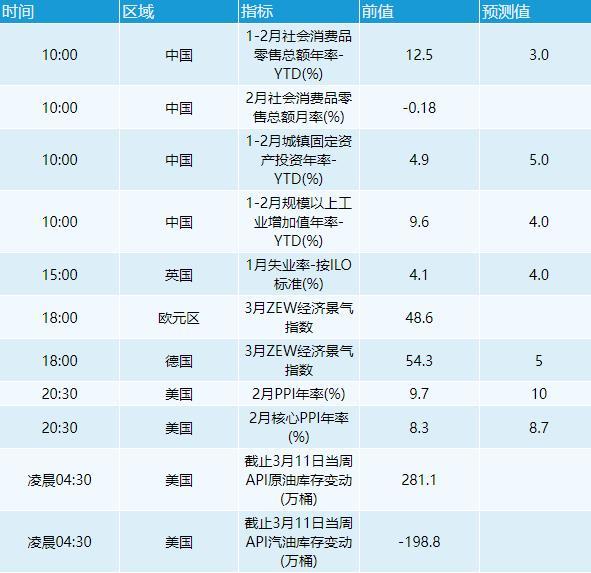 周一(3月14日)美元指数涨0.02%至99.12,欧洲货币上涨,因俄罗斯与乌克兰进行第四轮谈判。债券遭抛售,美国和德国的基准收益率触及疫情爆发之前以来的最高水平。关注焦点是周三的美联储决定,料将启动紧缩周期。英国央行周四、日本央行周五开会。