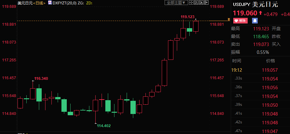 日元连续第二周下跌。截至发稿,美元兑日元本周累计上涨1.47%至119.015,盘中创2016年2月3日以来新高至119.128。日本央行则维持大规模的刺激措施不变,并警告说乌克兰危机的经济后果“具有非常高的不确定性”,表明其决心暂时保持货币政策的超宽松状态。
