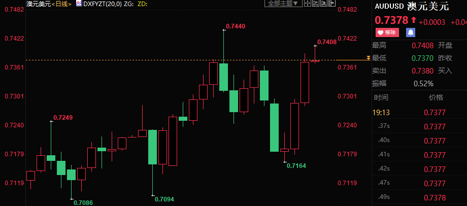 截至发稿,澳元兑美元累计上涨1.14%至0.7377。数据显示,澳洲2月就业人口增加7.74万人,远远超过预测的3.7万,同时失业率降至14年来的最低点4.0%,接近1970年代初以来最低点。