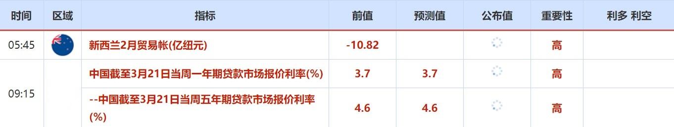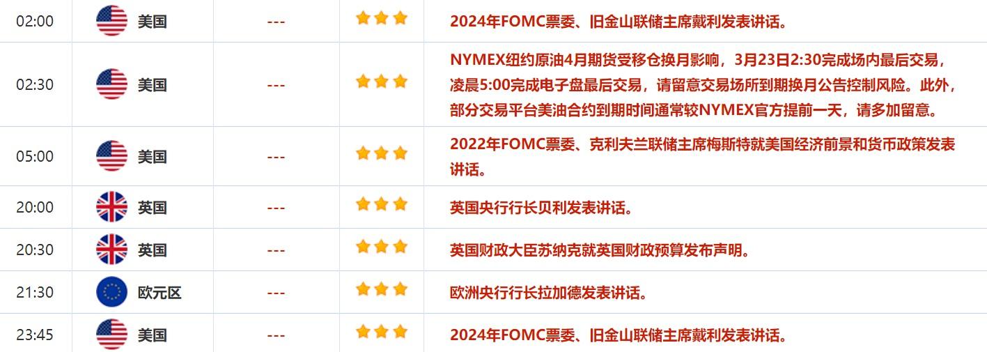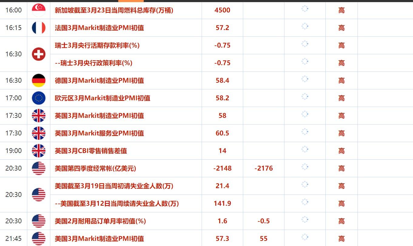 3月21日-3月25日当周重磅数据和事件前瞻