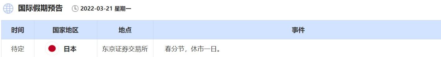 最后需要关注的是,周一东京证券交易所因为春分节,休市一日。