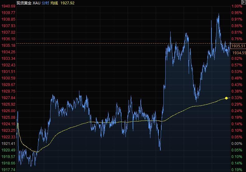 周一现货黄金维持涨势,盘中一度涨1%至1940.69美元/盎司,因交易员权衡美联储加息前景和黄金的保值吸引力,因油价上涨加剧通胀担忧、美股下跌刺激避险需求;之后收窄涨幅,因美联储主席鲍威尔称将采取必要措施遏制通胀,即使意味着加息速度快于预期。