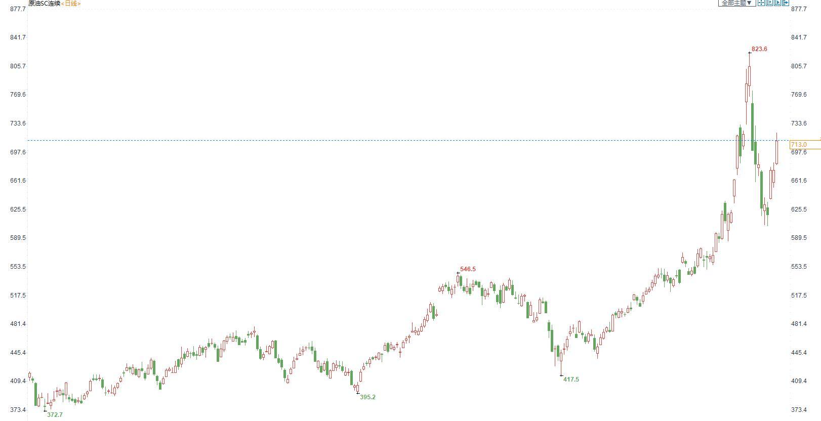 周二(3月22日)上海原油价格收盘上涨46.1,涨幅6.91%。主力合约2205终盘收于713.0元/桶,涨46.1元/桶。油价收涨,主要受到市场对供应忧虑的支撑。欧盟外长会议商讨加码对俄制裁,继续激发了对原油供应忧虑的担忧。
