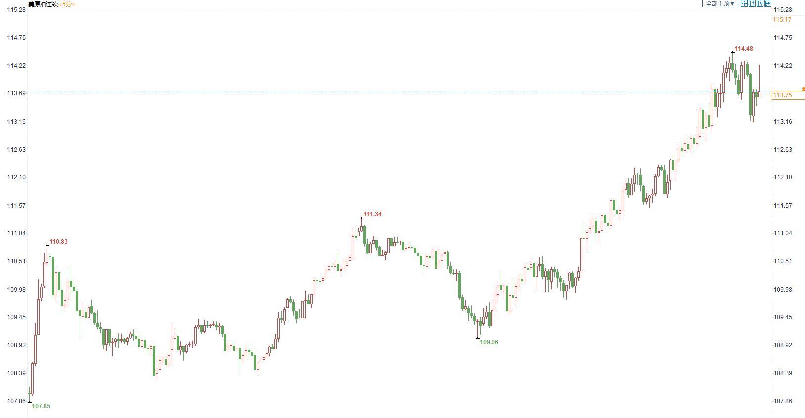 美国原油价格5分钟图显示