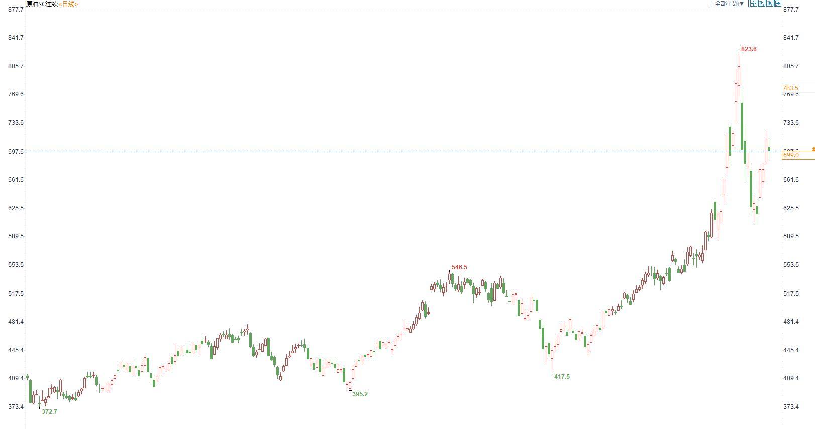 INE原油收盘回落小幅调整,对俄制裁的担忧情绪始终支持油价