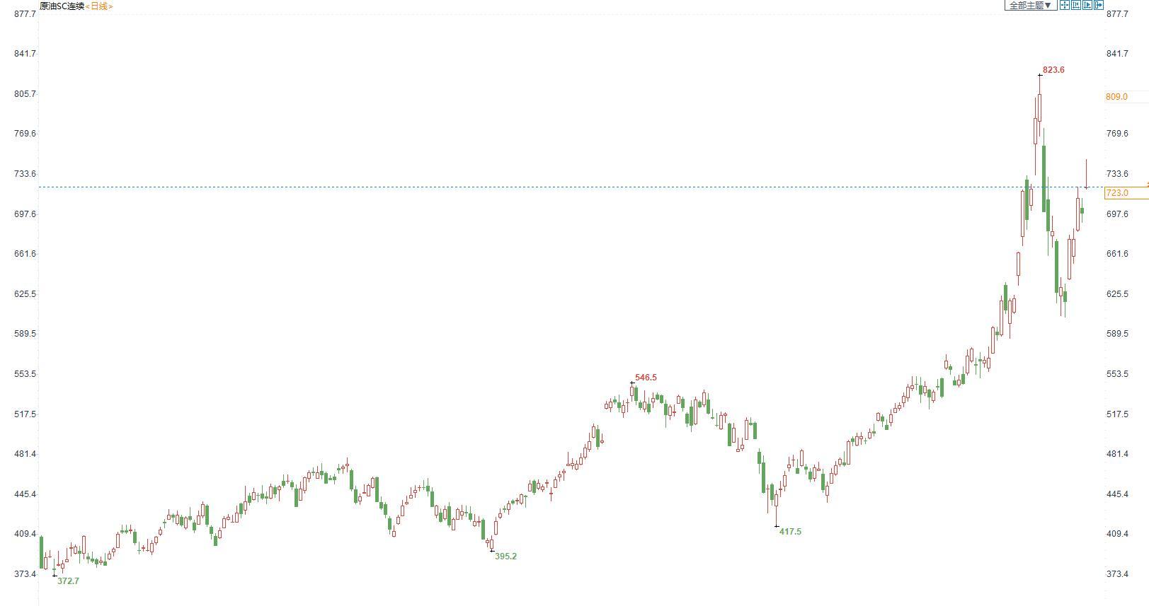 INE原油收盘上涨,对俄制裁导致供应中断的担忧支持油价